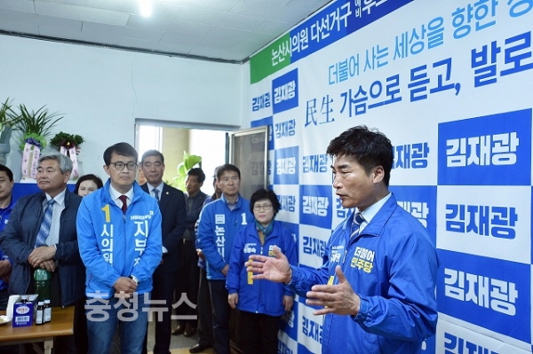 김재광 예비후보(더불어민주당, 연무읍, 강경읍, 채운면)는 31일 오후 연무읍에 위치한 자신의 사무소에서 선거사무소를 개소하고 본격적인 선거운동에 돌입했다.