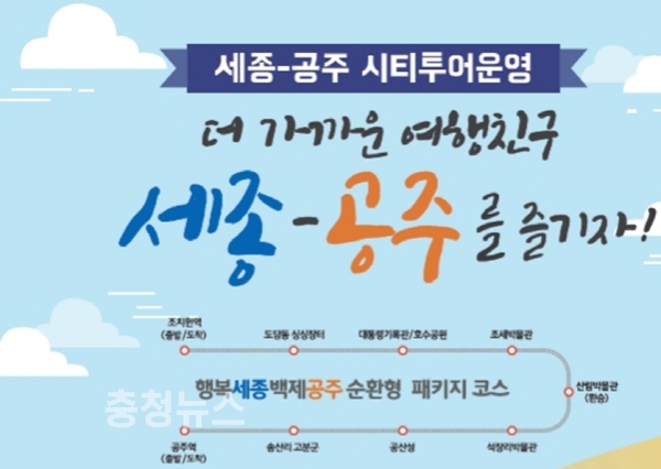 세종-공주 시티투어 사업은 세종시 정부청사 일원의 신도심 관광자원과 공주시의 백제 역사문화 관광자원을 묶어 ‘현재와 과거의 시간여행’을 테마로 추진한다.