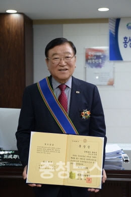 김석환 홍성군수가 지난달 30일 한국청소년연맹으로부터 ‘청소년대훈장’을 받는 영예를 안았다고 3일 밝혔다.