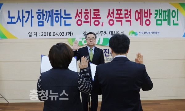 산림청 한국산림복지진흥원 윤영균 원장은 3일 대전 서구 둔산동 진흥원 대회의실에서 전 직원을 대상으로 ‘노사가 함께하는 성희롱·성폭력 예방 캠페인’을 실시했다고 밝혔다.