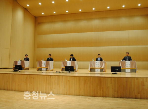한밭대 총장선거에 출마한 5명의 후보자들은 대학의 새로운 100년을 준비하고 경쟁력을 높이기 위해서는 세종캠퍼스 구축과 산학협력 강화 등이 필요하다고 목소리를 높였다.