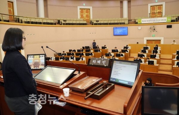 한편, 대전시의회는 오늘부터 10일까지 5일간 대전경덕중학교, 유성중학교, 대전대성중학교 대전가오중학교 순으로 302명의 학생들과 함께 ‘청소년 의회교실’을 개최할 예정이다.