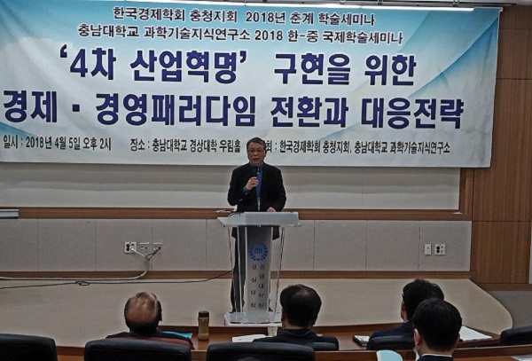 5일 충남대 과학기술지식연구소(SSK사업단)와 한국경제학회 충청지회 주최 한-중 국제 학술세미나에서 염명배 한국경제학회 충청지회장(충남대 교수)는 ‘4차산업혁명시대, 경제패러다임전환과 경제정책방향’이라는 주제발표를 통해 이같이 밝혔다.