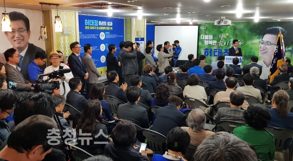 더불어민주당 허태정 대전시장 예비후보가 선거사무소 개소식을 열고 경선 승리를 위한 세몰이에 나섰다.