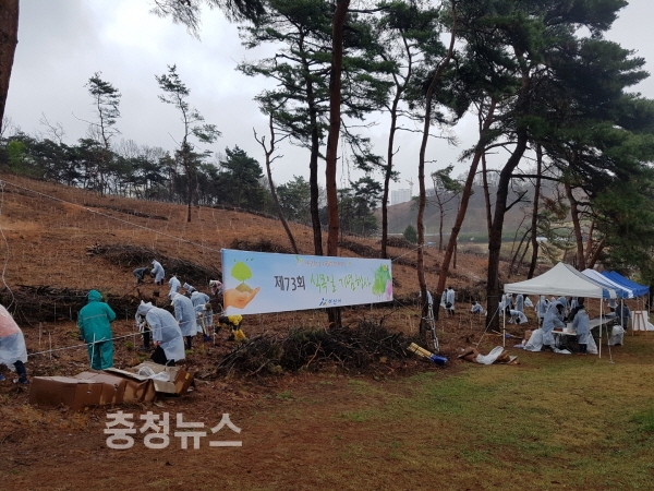 충남 아산시는 제73회 식목일을 기념해 지난 5일 염치읍 대동리117-1번지 일원 1ha 임야에서 2년생 소나무 3000여 그루를 심는 나무심기행사를 가졌다.