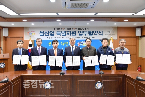 쌀값 하락은 농가 소득하락으로 직결됨에 따라 부여군은 벼 재배 농가에 대한 적극적인 지원책을 마련하기 위해 쌀 산업발전 특별지원 업무협약을 체결했다.