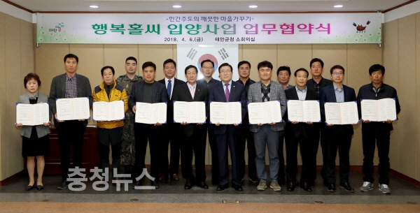 충남 태안군이 민간주도 ‘깨끗한 태안 만들기’ 일환으로 사업지역 기관·단체들과 ‘행복홀씨 입양 사업 업무협약(MOU)’을 체결했다.