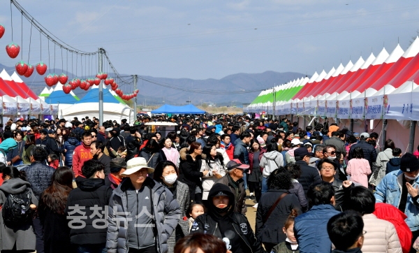 4월초에 개최되는 딸기축제는 지난해에 이어 봄비가 내리는 시점이 겹쳐, 평일 기간 추운 날씨와 우중으로 인해 관광객들이 일찌감치 자리를 뜨는 모습이 보였다.