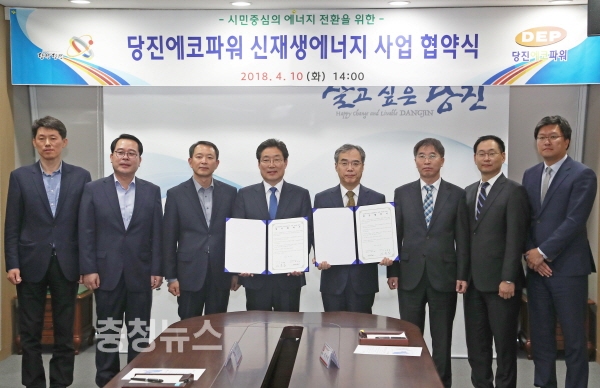 충남 당진시와 당진에코파워(주)는 10일 당진시청 접견실에서 신재생에너지사업 추진을 위한 업무협약을 맺고 상호 협력키로 했다.