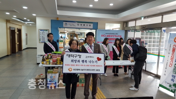 대전 대덕구(구청장 박수범)는 10일 구청 1층 안내데스크 앞에서 식품이나 생필품을 이웃과 나누고 일상 속 나눔 문화 실천을 위한 ‘기부식품 나눔의 날’ 행사를 열고 물품 전달식을 가졌다.