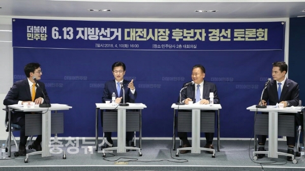 10일 서울 여의도 중앙당 주최로 열린 더불어민주당 대전시장 경선 후보자 정책토론회에서 박영순 후보는 자신의 주도권 토론 차례가 오자 “정치는 신의와 도리가 있어야 한다”며 “정치적 욕심 때문에 도리와 신의를 져 버리고 배반의 행보를 보이면 대중들로부터 따가운 비판은 불가피 할 것”이라고 의미심장한 메시지를 던졌다.