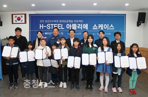 당진시에 따르면 현대제철은 11일 삼선산수목원에서 오명석 현대제철 당진제철소장(부사장)과 당진시청 관계자 등 40여 명이 참석한 가운데 철 제공공예술 프로젝트 ‘H-Steel 아뜰리에(ATELIER)’ 쇼케이스를 개최하고 ‘철제 공공예술 문화공간’에 설치된 공공예술조형물을 공개했다.