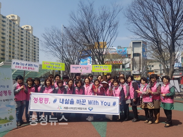 충남 계룡시여성단체협의회(회장 임미순)는 지난 9일 엄사면 엄사리 사거리 일원에서 미투&위드유(#me too, #With you)거리 캠페인을 실시했다.