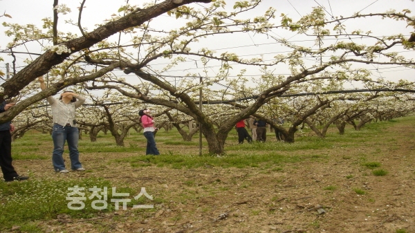 배꽃은 짧은 기간에 피어 일시적으로 많은 노동력이 필요하며 인공수분 시기를 놓치게 되면 착과율이 떨어져 수확량에 많은 영향을 미치게 돼 적시에 수정하는 것은 한해의 농사를 좌우하는 중요한 작업이다.