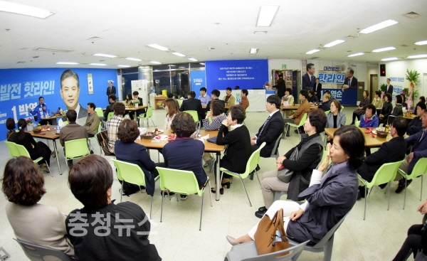 참석자들은 박 후보가 공약한 젊은 직장인들을 위한 무상임대 개념의 ‘신혼부부를 위한 공공주택 1000세대 공급’과 ‘무상 공공산후조리원 건립’에 많은 관심을 보이며 박 후보의 선전과 필승을 응원했다.