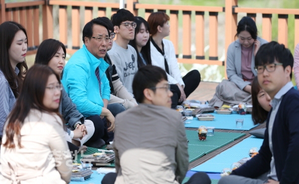 이날 행사는 대청호의 아름다운 풍경과 가벼운 봄바람이 부는 온화한 날씨 속에서 사회복지직 신규직원 20명이 모인 가운데 공직생활의 꿈을 주제로 격의 없는 대화가 이어졌다.