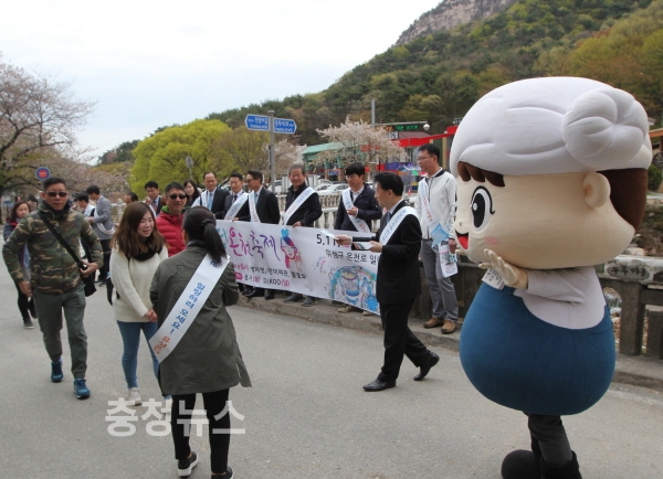 대전 유성구는 13일 동학사 벚꽃 축제장 일원에서 리베라 폐업 등 침체된 유성온천관광특구 활성화를 위한 민관 합동 길거리 캠페인을 실시했다.