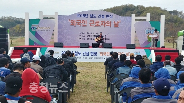 한국철도시설공단 강원본부(본부장 노병국)는 중앙선 도담∼영천 복선전철 등 관내 12개 건설현장에서 일하고 있는 250여명의 외국인 근로자들이 참석한 가운데 ‘외국인 근로자의 날’ 행사를 지난 13일 안동시 생활체육공원에서 개최했다고 밝혔다.