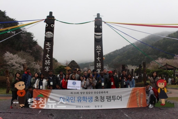 충남 청양군은 제20회 청양 칠갑산장승문화축제를 계기로 공주대학교 외국인 유학생을 초청 관광명소를 알리는 팸투어를 실시했다.
