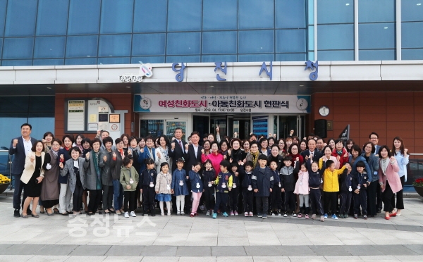 충남 당진시가 17일 당진시청사 1층에서 아동친화도시와 여성친화도시 현판식을 가지고 아동.여성친화도시 시대의 출발을 알렸다.