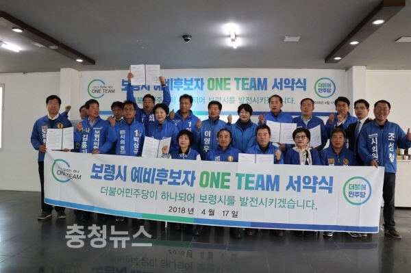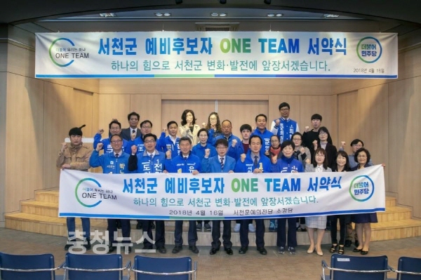 지난 16일에는 서천지역 예비후보자들이 모여 원팀서약식을 가졌으며 17일에는 보령에서 예비후보자들이 아름다운 경선을 결의했다.