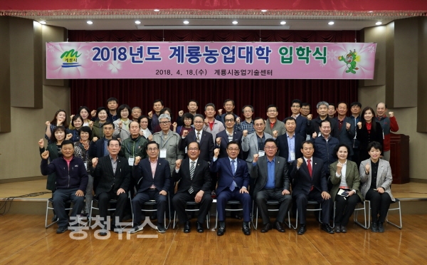 계룡시(시장 최홍묵)농업기술센터는 지난 18일 기술센터 대강당에서 최홍묵 시장을 비롯한 입학생 등 40여 명이 참석한 가운데 제7회 농업대학 입학식을 개최했다.