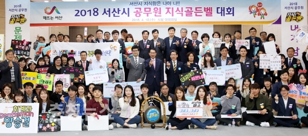 충남 서산시가 공직사회에서는 최초로 지난 18일 시청 대회의실에서 직원 200여명이 참여한 가운데 ‘2018 공무원 지식 골든벨 대회’ 를 열었다.