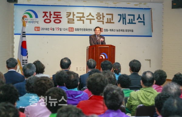 장동 칼국수 학교 개교식에서 박수범 구청장 인사말