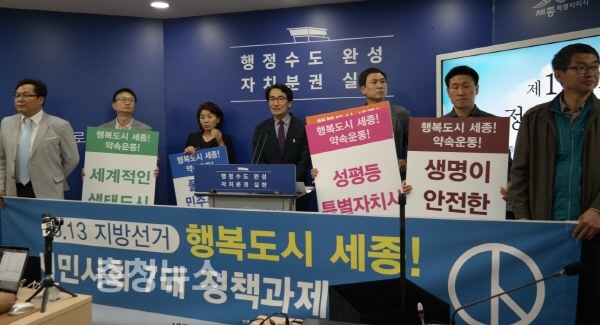 세종지역 8개 시민사회단체가 19일 “정책으로 투표하면 세상이 좋아집니다. 좋은 정책이 곧 좋은 후보입니다” 라는 슬로건으로 행복도시 세종을 위해 시민사회 7대 정책 및 80과제를 제안했다.