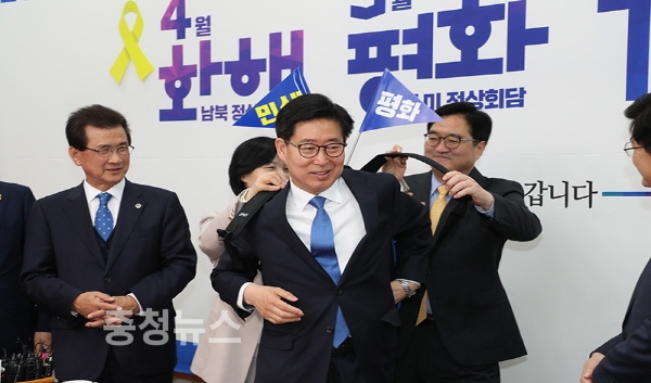 한편, 충남도당위원장인 박완주 최고위원은 최고위원회의에 앞서 “당의 지방선거 목표가 9곳 이상”이라며 “충청권 4곳은 수성해야 하는 입장이다. 반드시 승리하겠다”고 힘줘 말했다.