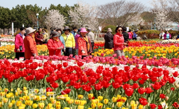 2002년과 2009년 안면도 국제 꽃 박람회가 펼쳐졌던 꽃지 해안공원에서 '태안 세계튤립꽃축제'가 지난 19일 개장해 많은 관광객들이 관람을 하고 있다.