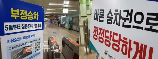 공사는 정상 승차권 이용문화 정착을 위해 부정승차 단속 배너를 추가로 설치하고 전 역사 합동 캠페인을 실시하는 등 단속과 예방활동을 병행 추진하기로 했다.