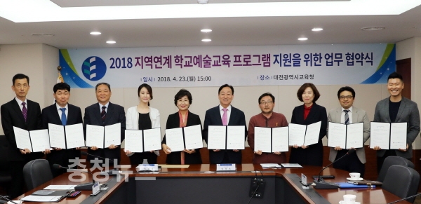 대전시교육청(교육감 설동호)은 23일 시교육청 중회의실에서 대전시립미술관을 포함한 9개 기관과 학교예술교육프로그램 업무협약을 체결했다.