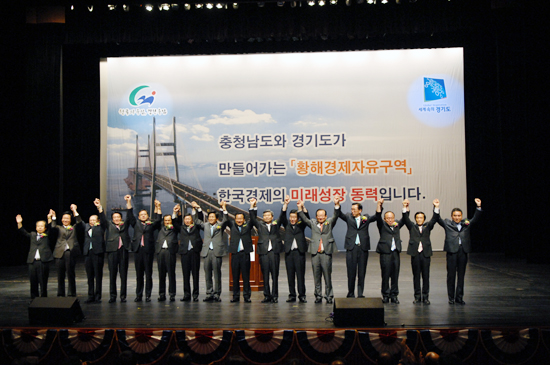 경기도와 충남도는 22일 당진군 문예의 전당에서 이윤호 지식경제부장관과 김문수 경기 지사, 이완구 충남 지사, 김성배 경제자유구역청장 및 양 도의회 의장, 시장.군수, 주민 등 500여명이 참석한 가운데 황해경제자유구역청 개청식을 가졌다.