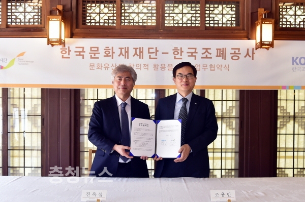 한국조폐공사(사장 조용만)는 한국문화재재단(이사장 진옥섭)과 고품위 압인기술과 문화유산 컨텐츠의 합작 문화상품 개발을 위한 업무협약을 체결했다고 23일 밝혔다.