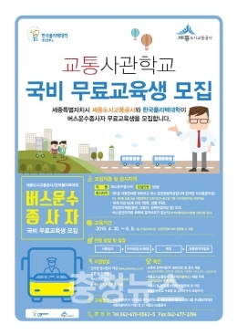 세종도시교통공사(사장 고칠진)는 오는 27일까지 한국폴리텍Ⅳ대학과 교통사관학교(버스운수종사자 양성을 위한 국비 무료교육)의 교육생을 모집한다고 밝혔다.