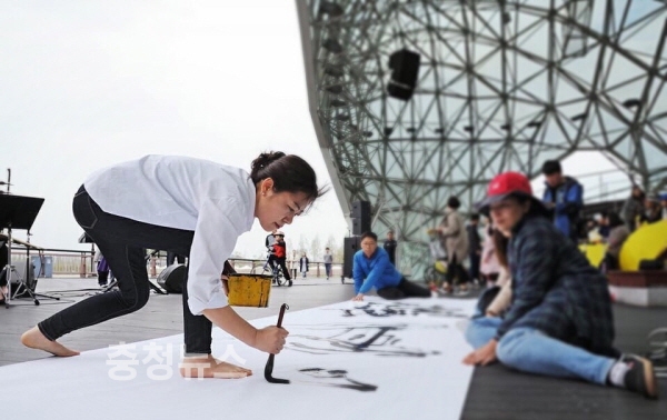추모문화재에서는 전국적으로 활동하고 있는 노란우산프로젝트(대표 서영석)와 청보리 캘리그라퍼(대표 김순자) 맑음프로젝트(대표 박해인)의 퍼포먼스가 더해져 더욱 진한 감동을 전해 주었다.