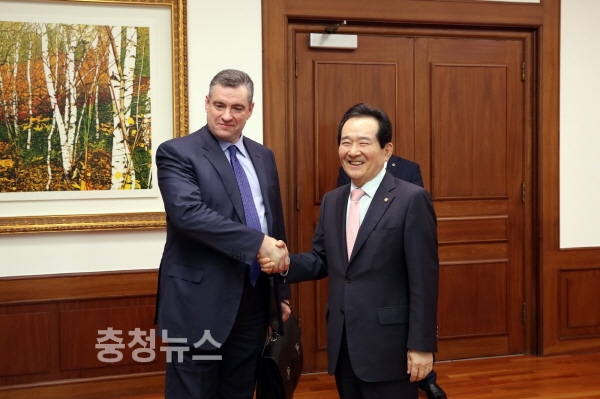 정세균 국회의장은 24일 오후 2시 30분 국회의장 집무실에서 레오니드 슬러츠키(Leonid Eduardovich SLUTSKIY) 러시아 하원 외교위원장을 접견했다.