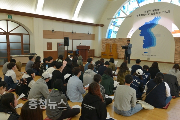 백석대학교(총장 장종현) 총학생회는 25일 교내 진리관 기도실에서 ‘한반도 평화와 남북정상회담 성공기원 기도회’를 개최했다.
