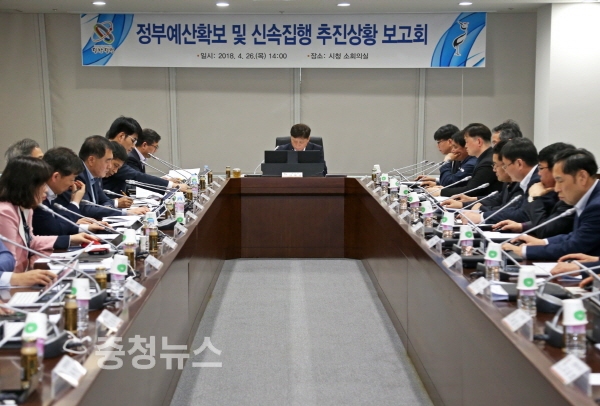 충남 당진시는 26일 심병섭 당진시장 권한대행 주재로 전 부서장이 참석한 가운데 보고회를 갖고 2019년 정부예산확보 추진상황을 점검했다.