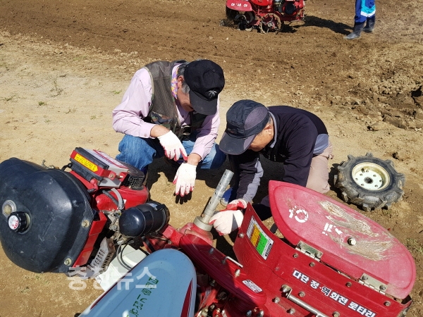 이날 관리기 사용요령에 대한 이론교육은 물론 운전방법, 밭갈이, 두둑 만들기, 작업기 탈부착 방법 등에 대해 교육이 진행됐다.