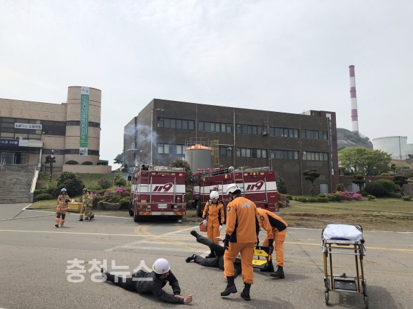 충남 서천군은 26일 2018년 재난대응 안전한국훈련 일환으로 LS메탈 장항공장에서 유해화학물질 유출사고 대응을 위한 현장종합훈련을 실시했다.
