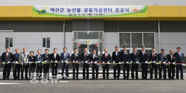 충남 예산군은 지난 26일 농산물의 부가가치 향상으로 농가소득 제고와 창업지원 등을 위해 건립한 농산물 공동가공센터(신암면 종경리 281-83)의 준공식을 가졌다.