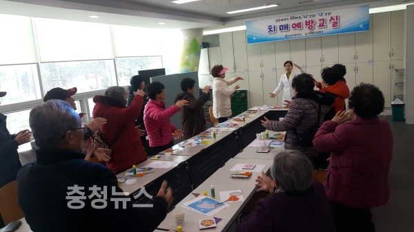치매예방교실은 중앙치매센터에서 개발한 두근두근 뇌운동 프로그램을 이용해 치매예방체조와 함께 기억력, 주의집중력, 지남력, 계산력, 시공간능력을 요하는 프로그램으로 진행된다.