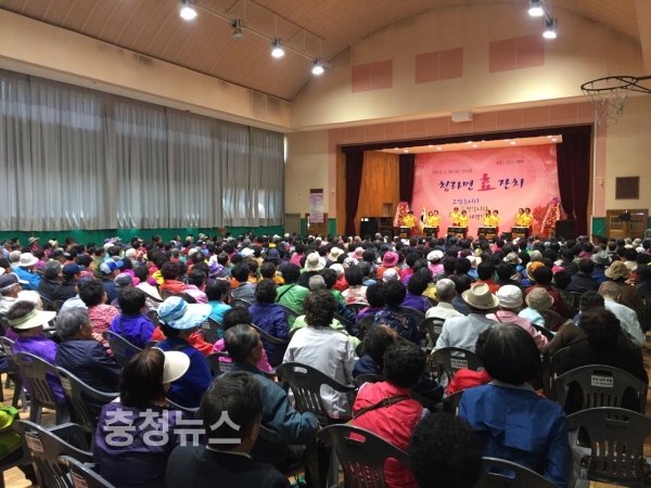 청라풍물단의 길놀이로 시작된 행사는 장수어르신 및 어려운 가정에게는 소정의 격려금 지급 등 기념행사와 오찬 후에는 난타, 한가름 국악봉사대 및 각설이 공연, 어르신 노래자랑 순으로 진행됐다.