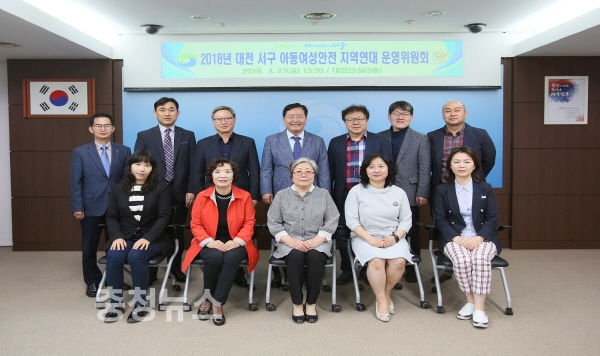 대전 서구(구청장 장종태)는 지난 27일 구청 대회의실에서 경찰서, 아동․여성보호시설, 학계 전문가, 지역주민 대표 등 지역연대 위원 15명이 참석한 가운데, ‘아동․여성안전 지역연대 회의’를 개최했다고 밝혔다.