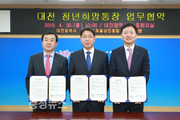 대전시와 대전경제통상진흥원, 하나은행이 대전시의 ‘청년희망통장 사업’의 성공을 위해 손을 맞잡았다.