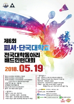 ‘제6회 피셔ㆍ단국대학교 전국 대학 동아리 배드민턴 대회’가 오는 19일 단국대 천안캠퍼스 체육관에서 열린다.