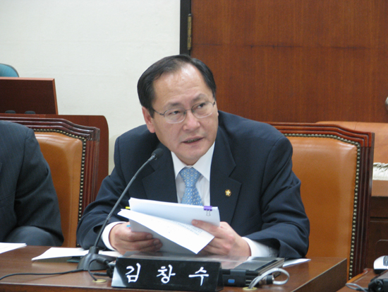 국회 공기업관련대책특별위원회 위원으로 활동 중인 김창수(자유선진당/대덕구)의원은 지난 29일 감사원 업무보고를 받는 자리에서 김종신 감사원장 대행에게 “감사원은 공기업 기관장 자리 따먹기에 혈안인 청와대의 하수인을 그만두라”고 지적하며, 감사원으로 본연의 자세로 돌아올 것을 강력히 요구했다.