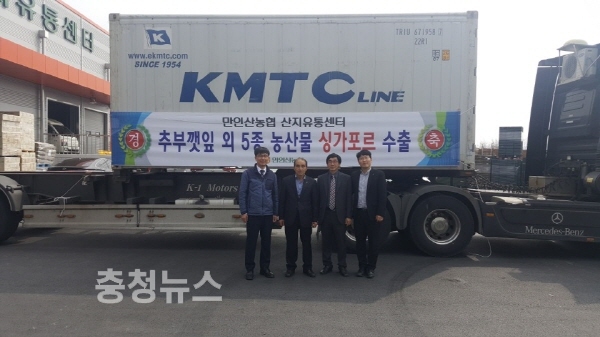 충남 산군의 대표적인 효자 작목인 금산추부깻잎이 선박운송 첫 수출에 성공했다.